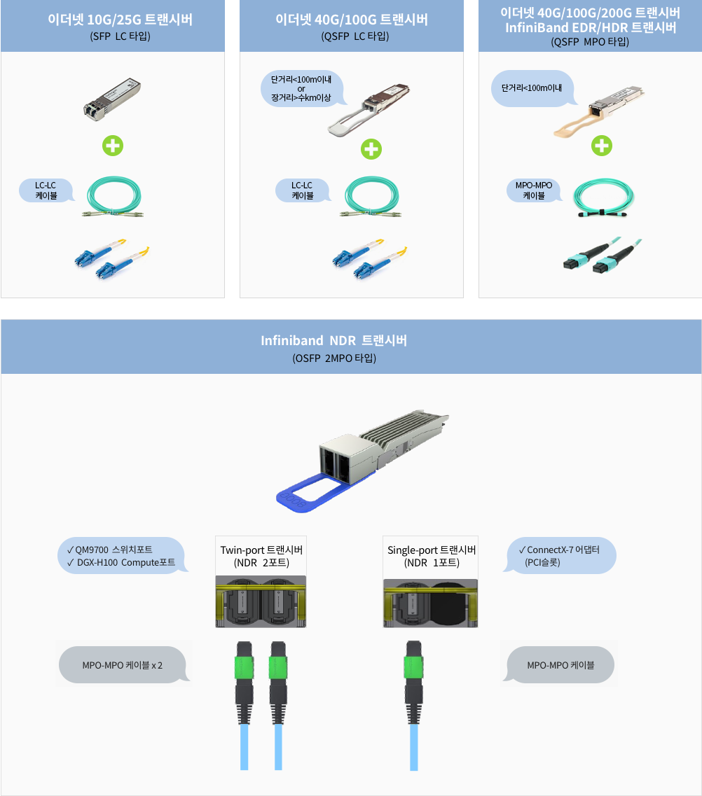 NVIDIA가 자체 설계한 ConnectX칩을 사용하여 다양한 어댑터 및 DPU를 제공하고 있습니다. 보다 빠른 속도와 혁신적인 인-네트워크 컴퓨팅을 활용하는 NVIDIA ConnectX InfiniBand 스마트 어댑터는 뛰어난 성능 및 확장성을 달성합니다