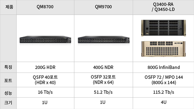 800G InfiniBand 스위치 모델을 소개하였습니다. CPO 기술 덕분에 트랜시버