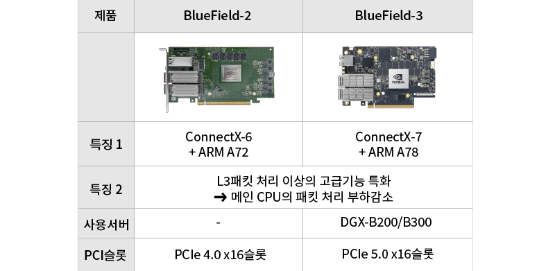 BlueField DPU는 광범위한 고급 네트워킹, 스토리지 및 보안 서비스를 오프로드, 가속 및 격리하여 클라우드, 데이터센터부터 엣지까지 이르는 모든 환경에서 모든 워크로드에 안전하고 가속화된 인프라를 제공합니다. BlueField DPU는 가장 까다로운 워크로드를 해결하기 위한 강력한 컴퓨팅, 완전한 인프라-온-칩 프로그래밍 기능과 고성능 네트워킹을 모두 지원합니다.